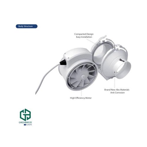 GREENBREEZE WIND 200 Mixed Flow Duct Fan, 8" Inline Exhaust Fan, 2420 RPM, Voltage/Frequency 220V/50Hz, For Use for Bathroom, Hotel, Coffee Shop, Warehouse, White | GB-WIND-200