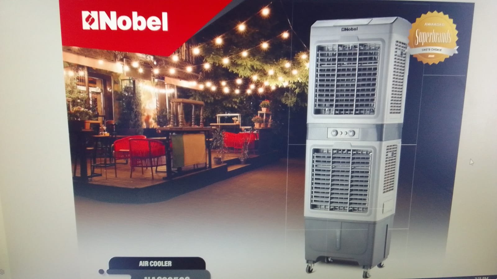 Nobel 50L Air Cooler with Honeycomb Cooling Pad – 12000 m³/h High Airflow, 3-Speed Settings, Powerful Axial Fan, Easy Mobility 50 L 200 W NAC2050S